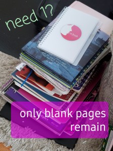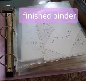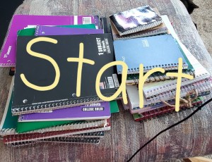 One of the things I did was inspired by a friend’s mom. I’ve journaled on and off since high school and I’ve been taking written notes during sermons and conferences and writing out prayers, dreams, and visions for a couple decades. This resulted in a bunch of notebooks and journals that were half filled and taking up a lot of room. Pics below of the process, I didn’t get a pic of the bookshelf they were on, but you get the idea. I pulled out all the things I wanted to keep, recycled what I could, then put the keep stuff in sheet protectors grouped by journals/years. The results are a lot of empty notebooks (kept the ones that had a decent amount of paper left), a lot of recycled paper, and one binder. I also ran across things I forgot I wrote over the years, which was pretty cool. I didn’t really read all of it, that’s a project for another day!